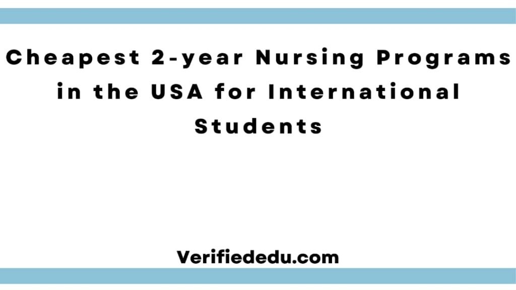 The best 5 cheapest 2-year nursing programs in the USA for international students are listed above for aspiring nurses. Please visit each school's website to learn about their requirements, application fees, housing, scholarships, grants, and other essential information. Simply click on the school, as the link to the school's website is private to each school. THANK YOU FOR CHOOSING verifiededu.com/; we pledge to provide you with additional useful information to help you with your academic path.